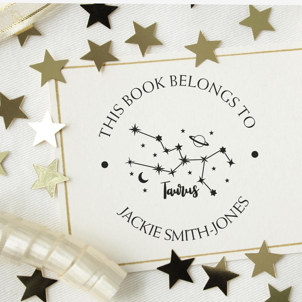 - CUSTOMIZED BOOK LOVER STAMP: Personalize your library with our exquisite Self-Inking Taurus Constellation stamp. This elegant design not only showcases your ownership but also adds a celestial touch to your collection. Perfect for book lovers who appreciate unique, personalized items!