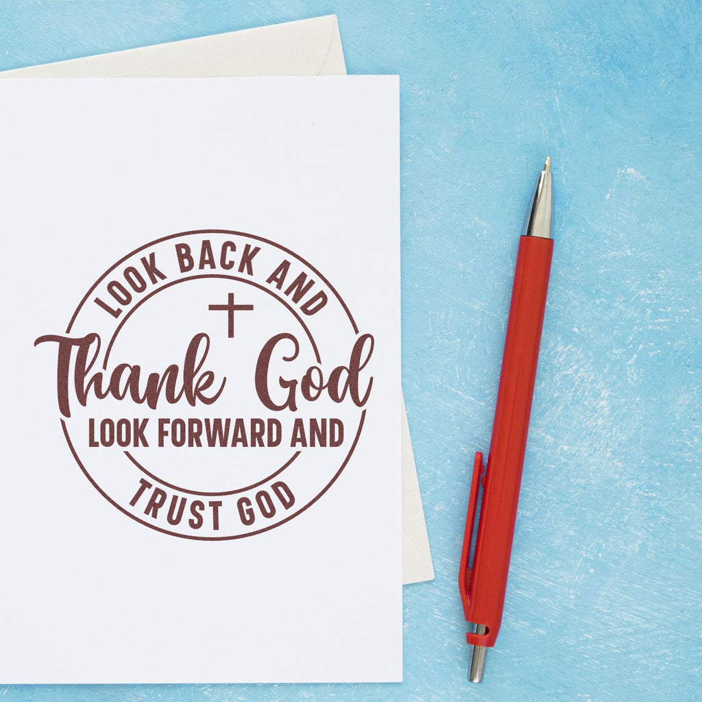 Visually, the black-and-white circular emblem—anchored by a simple cross and uplifting messages of gratitude and forward-looking faith—brings a modern, reverent feel to your stationery. It’s ideal for faith-based classrooms, boutiques, ministries, and brands that want their communications to reflect not just professionalism, but purpose. Each print becomes more than a mark; it’s a reminder of hope, trust, and genuine thanks.
