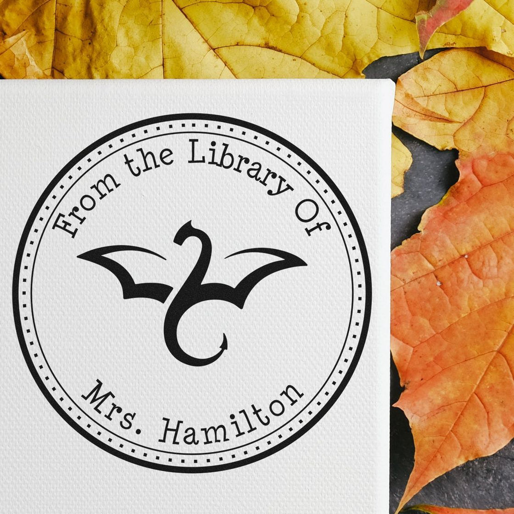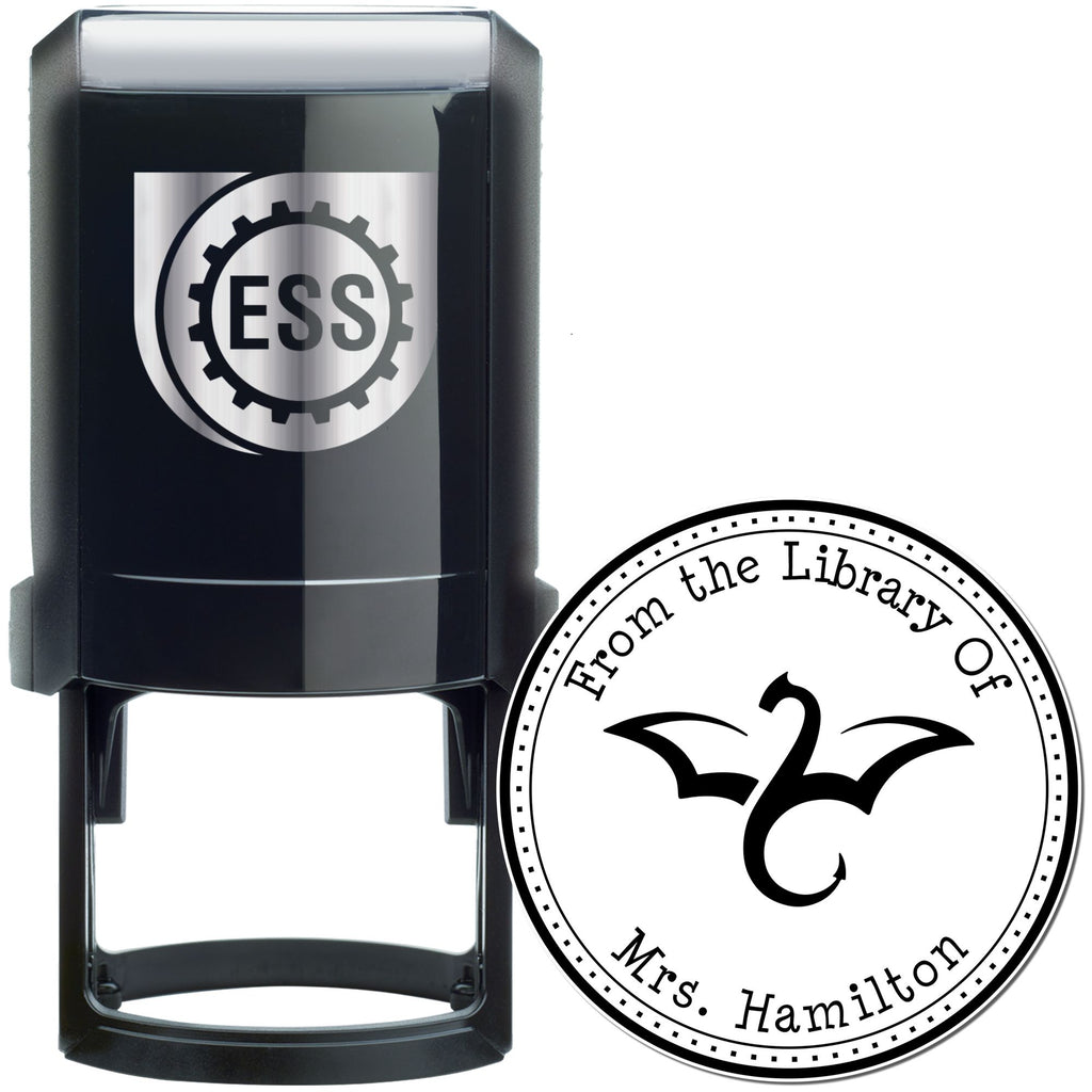 Introducing the Self-Inking Thunder Wing Custom Made From The Library Of Stamp – the perfect blend of functionality and personalization for every book lover! This exquisite stamp features a stunning Thunder Wing Dragon design, encircled by a three-ring border that adds a touch of elegance to your book collection. Measuring 1-5/8" in diameter, it’s the ideal size for creating beautiful, customized labels that declare ownership of your favorite reads.
