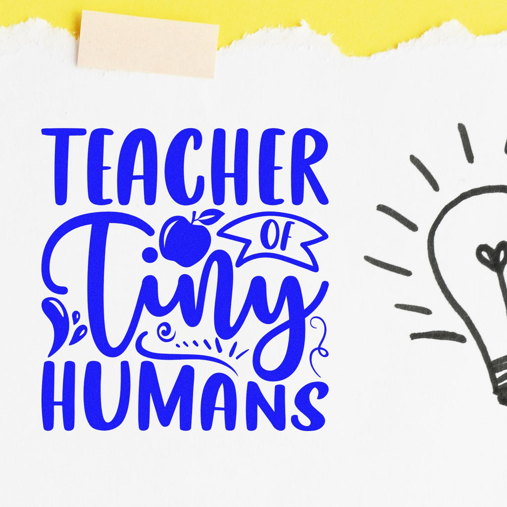 Crafted for the everyday hero, our Self-Inking Tiny Humans Mini Card Stamp celebrates your impact with a bold, hand-lettered “TEACHER OF TINY HUMANS,” playfully threaded with an apple icon that makes every impression feel like a high-five. At 1-5/8" square, it’s the perfect little statement—cute, crisp, and impossible to miss.