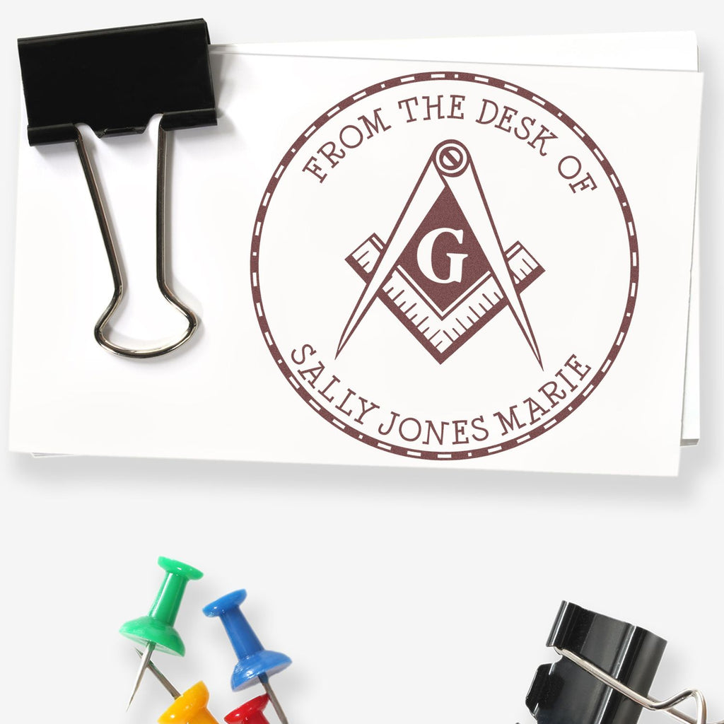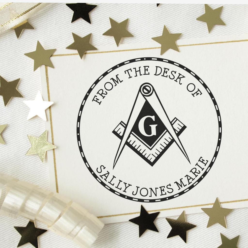 Elevate your stamping game with our Self-Inking Traditional Masons Personalized From The Library Of Stamper! This exquisite stamp is the perfect blend of efficiency and style, designed for effortless use with a simple press-and-print mechanism. Say goodbye to hand fatigue and hello to productivity! Ideal for Masonic Lodge members, this custom-made reader stamp allows you to mark your books, documents, and correspondence with pride and professionalism.