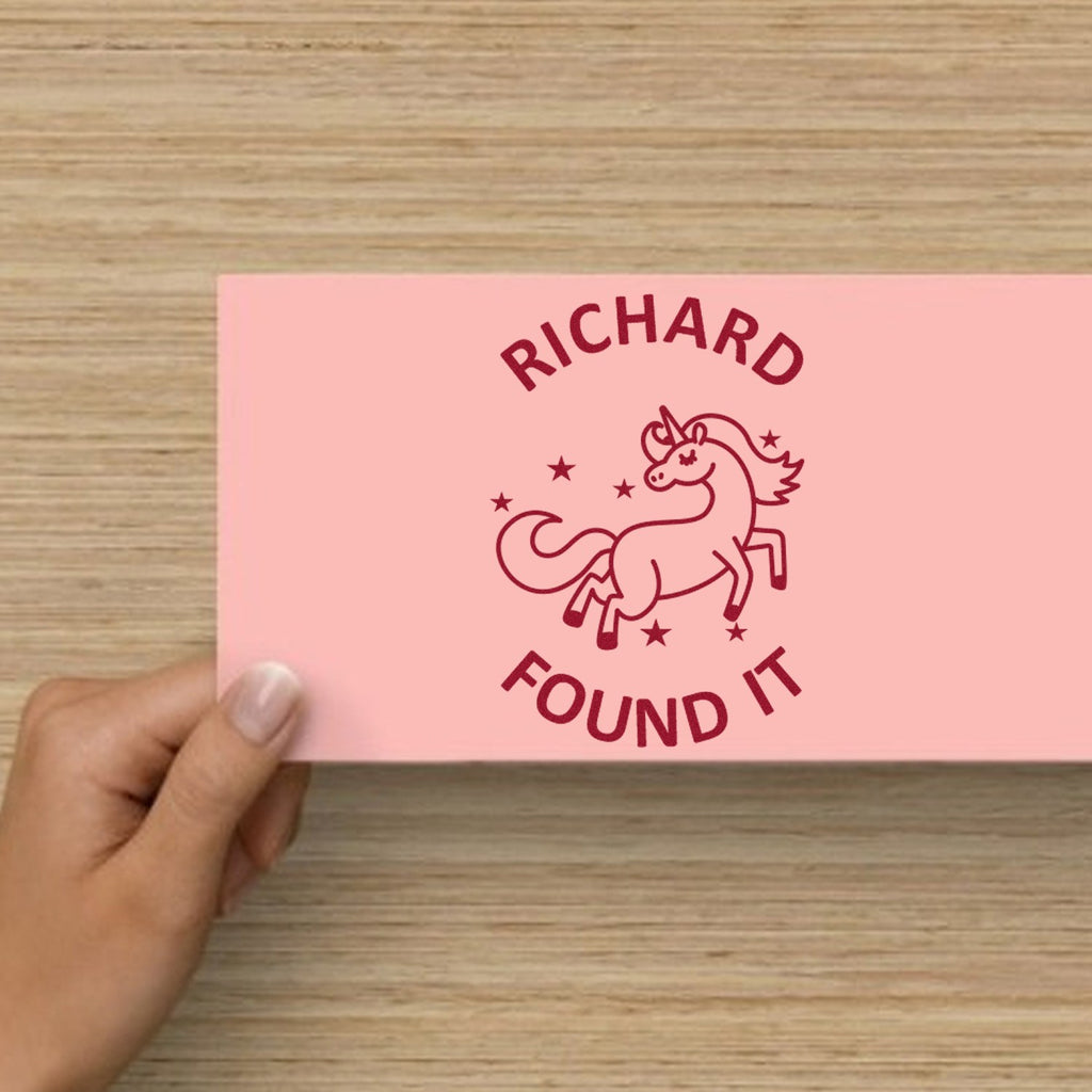 Featuring a charming unicorn design surrounded by twinkling stars, this stamp makes your geocaching signatures truly unforgettable. The bold, uppercase text and clean circular border ensure your mark stands out in every logbook you encounter. Available in 11 vibrant ink colors, you can customize your geocaching signature to match your personality.