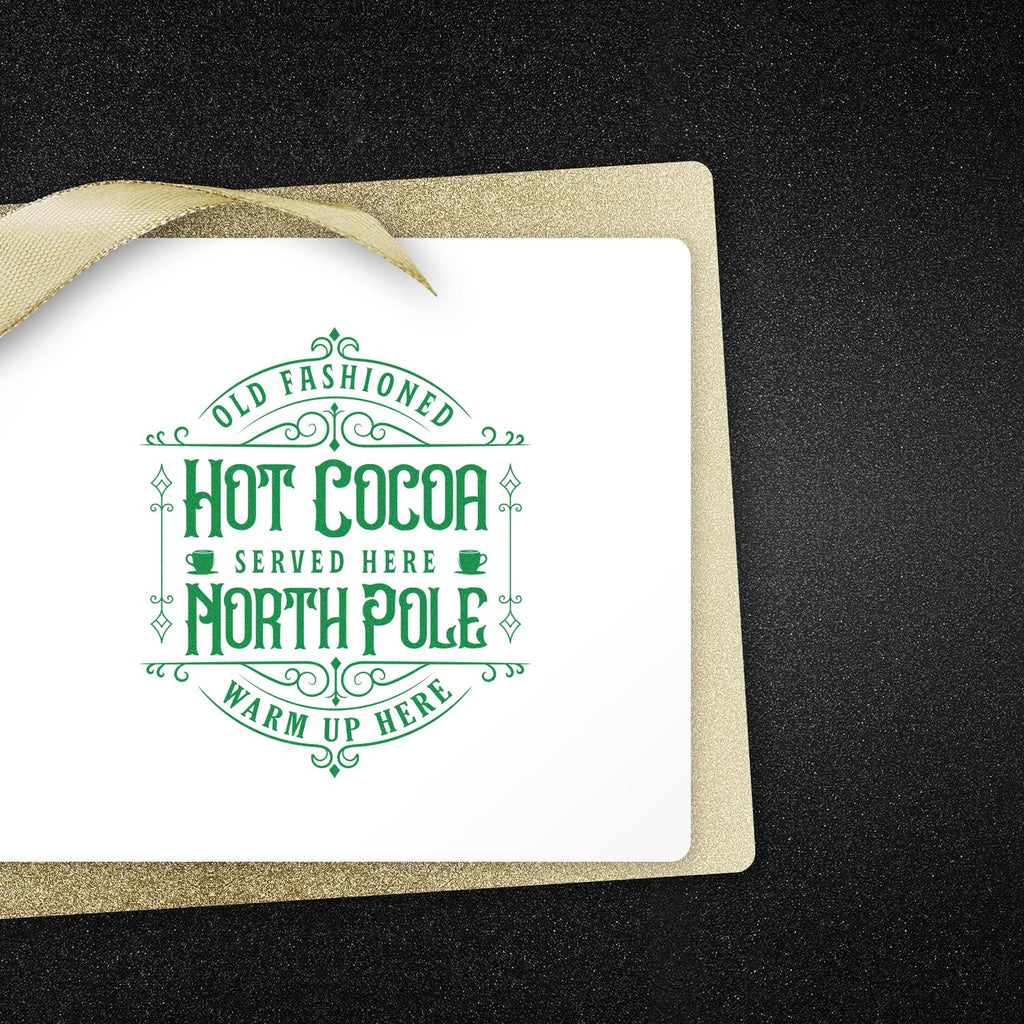 Endlessly cozy and delightfully practical, our Self-Inking Vintage Cocoa Paper Craft Stamp brings the charm of a snow-dusted cocoa stand to every package, tag, and note you send. The 1-5/8" square impression frames a nostalgically styled round sign trimmed in ornate scrollwork, twin steaming mugs, and whimsical Arctic lettering that invites customers—and keepsakes—to “stop by and warm up.” One press, and you get that rich, antiqued look that feels hand-poured and heart-made.