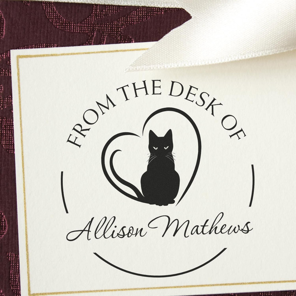 Self-Inking Watchful Kitten Personalized Library Name Stamp Highlights and Features
