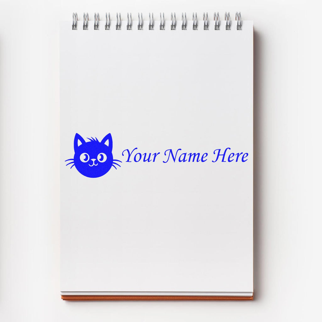 The Self-Inking Whisker Wonder Stamper features a charming design of an adorable black cat face with wide, expressive eyes and perky ears. The playful yet elegant font allows for personal customization, making it the perfect spot to add your name or a special message. Available in three sizes – small, medium, and large – you can choose the perfect fit for your needs.