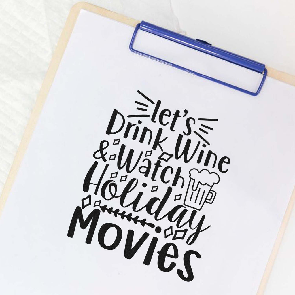 Jotted on a napkin after our own wine-and-movie night, this hand-drawn design bursts with cheerful confetti, bold imperfect script, and a cozy invitation to gather—turned into a self-inking Wine Night Greeting Card Stamp that makes every card feel personal and inviting.