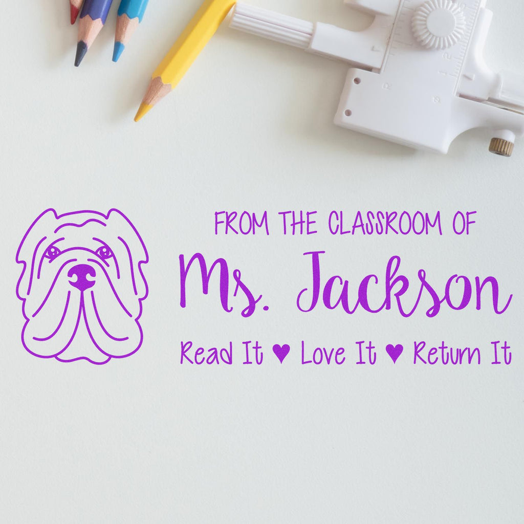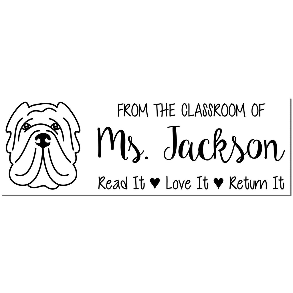 Personalized Touch for Book Lovers This Custom Read It Love It Stamp features an adorable picture of a Sharpei Dog, personalized with your name, and includes the phrases "From the Classroom of" and "Read It, Love It, Return It." This rectangular stamp is not just practical; it’s a delightful way to express your personality and love for your pet. Imagine stamping your favorite books with this charming design, making them look more special and unique. It’s not just about marking your books; it’s about showcasing your passion for reading and your furry companion!