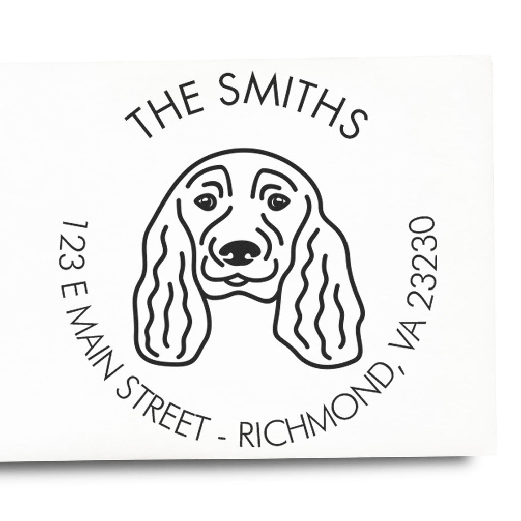 - Stylish & Professional Look: Featuring a minimalist design of an English Cocker Spaniel, this stamp combines functionality with style. The clean, modern sans-serif font enhances readability and adds a touch of elegance to your correspondence.