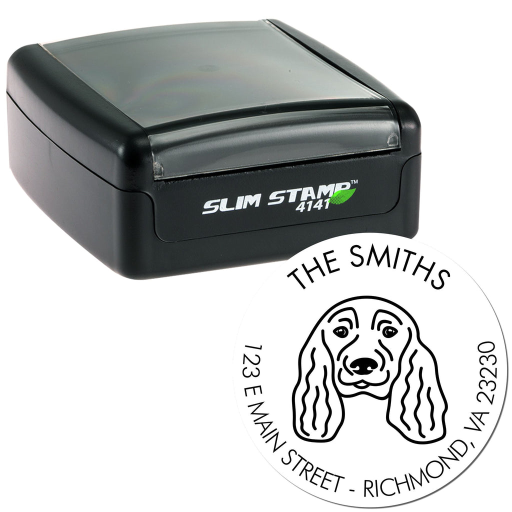 Slim Pre-Inked English Cocker Spaniel Personalized Home Address Stamp Highlights and Features