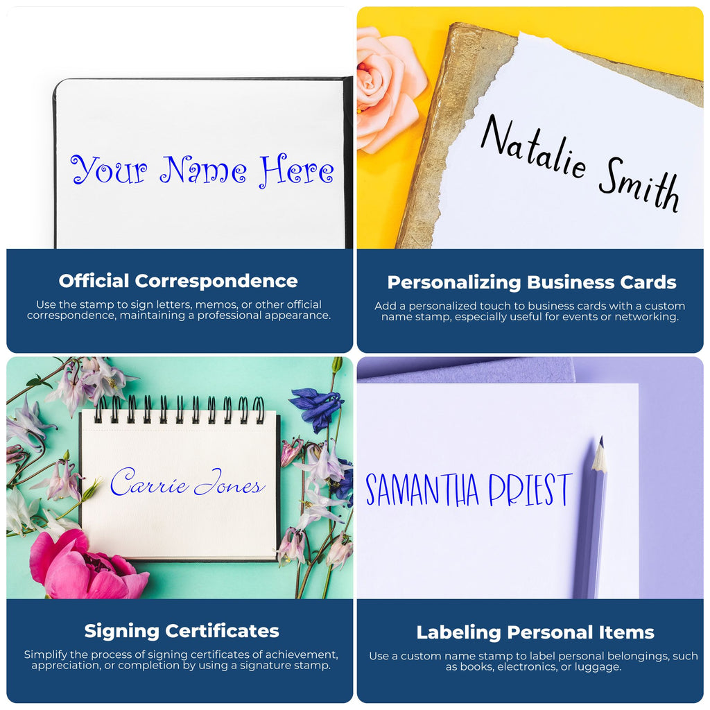 - VIBRANT COLOR OPTIONS: Choose from five eye-catching ink colors—red, blue, green, purple, and black. These colors not only help organize your documents but also make your personalized stamp stand out.