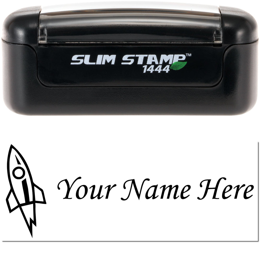 Slim Pre-Inked Rocket Blast Personalized Ink Stamp Highlights and Features