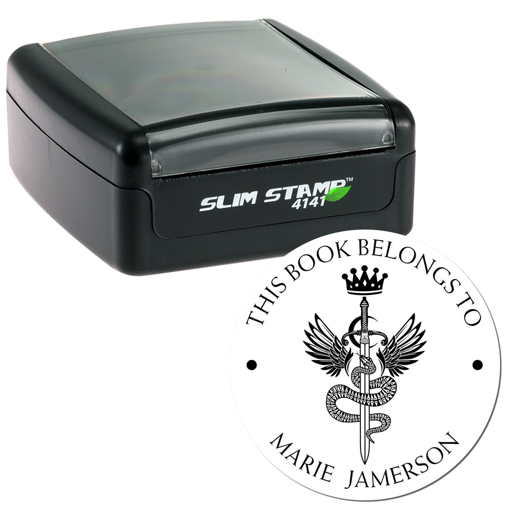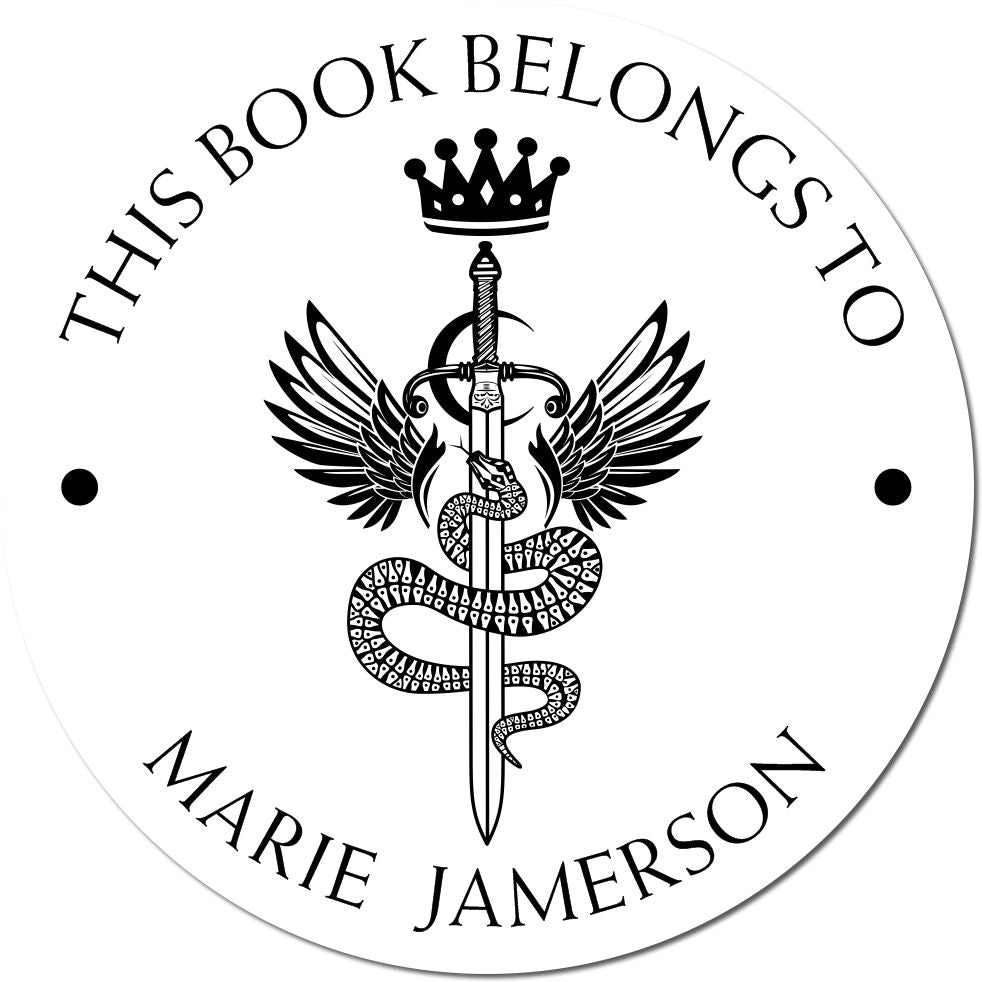 - THEMATIC DESIGN: Featuring a stunning sword with a crown, snake, and wings, this stamp is perfect for fantasy lovers. It not only marks your books but also adds a touch of magic to your collection. Stand out with a design that reflects your passion!