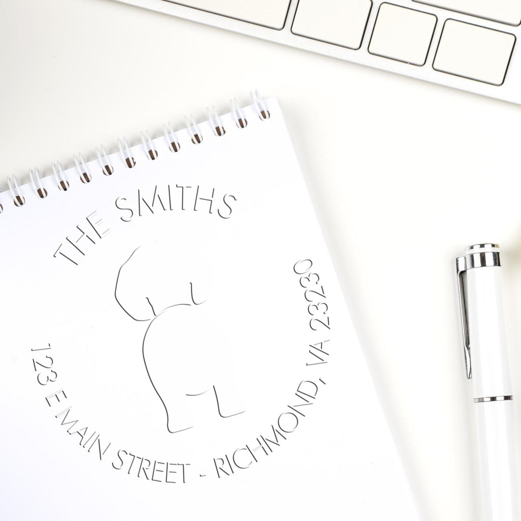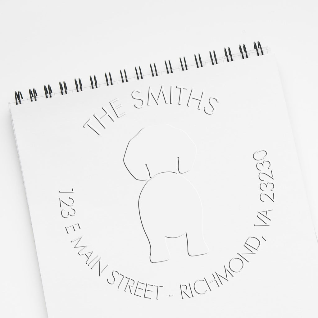 Keywords: Seal Embosser Name and Address Customizable, Custom-Made Return Address Embossed Stamp, Beagle Dog Embosser, Personalized Mailing Seal.