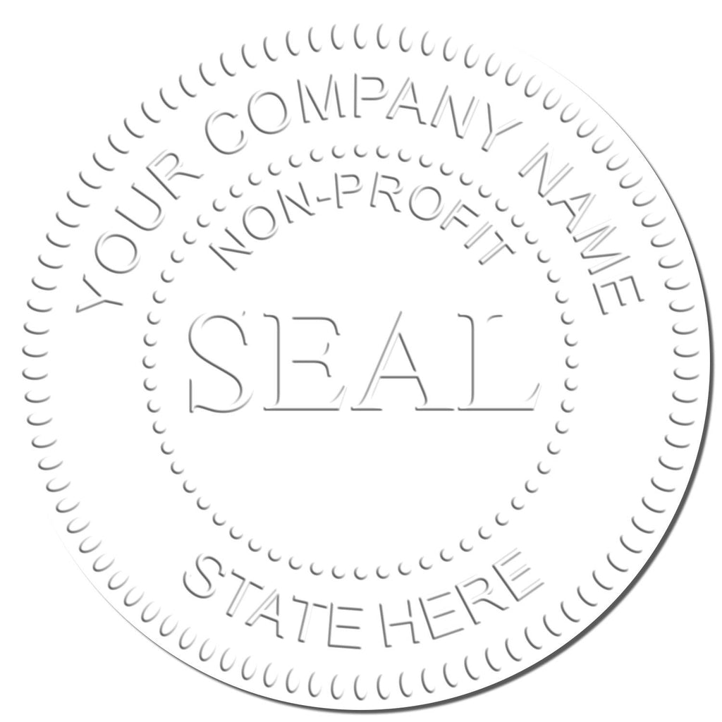 The Soft Seal Non-Profit Seal measures a compact 1-5/8", making it the ideal size for any document. The design features a circular seal with a dotted border, customizable text for "your company name" and "state here" on the outer circle, and the words "non-profit seal" prominently displayed in bold within the inner circle. This formal and professional style is perfect for all your official documentation needs.