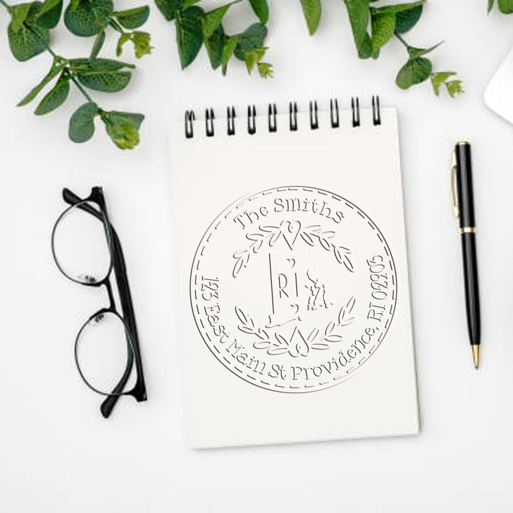 Your personalized embosser creates crisp, raised impressions that command attention and add a touch of sophistication to every document. The classic wreath design, complemented by the Rhode Island anchor and "HOPE" ribbon, reflects both state pride and timeless elegance.