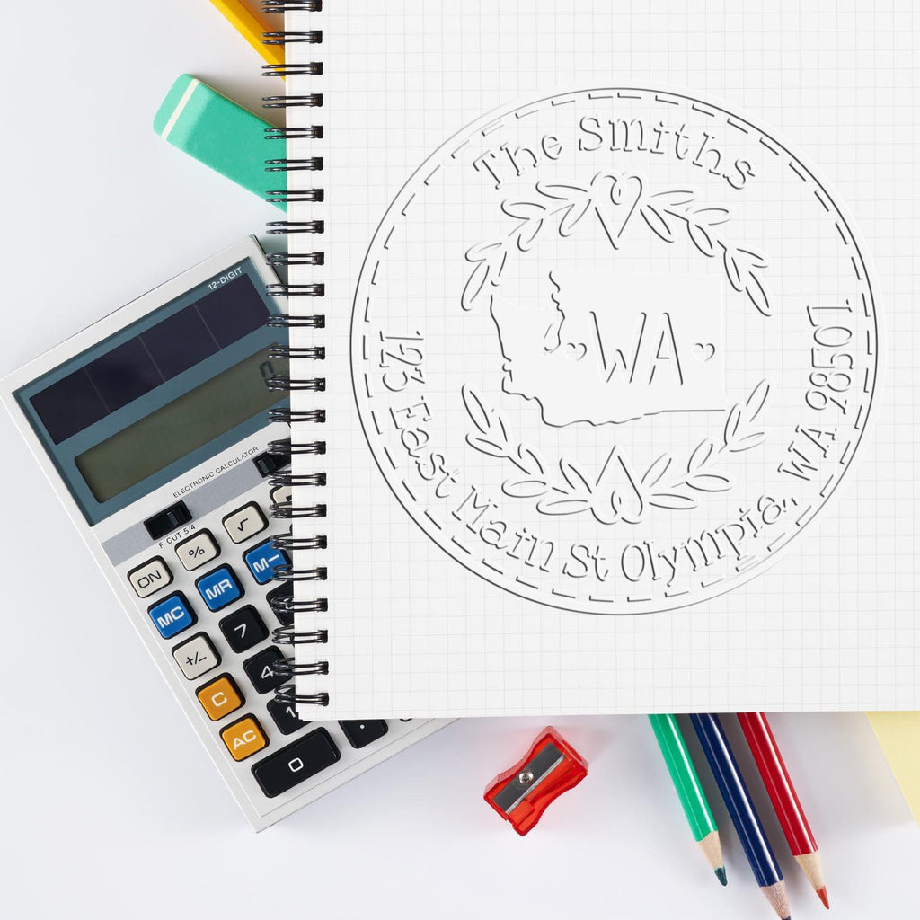 - PERFECT HOUSEWARMING ESSENTIAL: Celebrate your new Washington residence with a custom address embosser that makes a statement. Includes your exact address details in an elegant circular design.