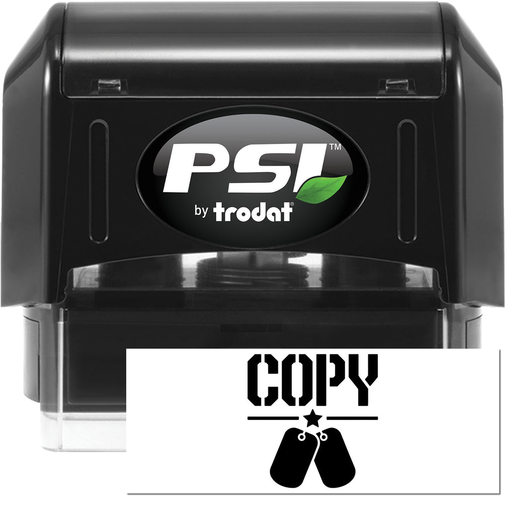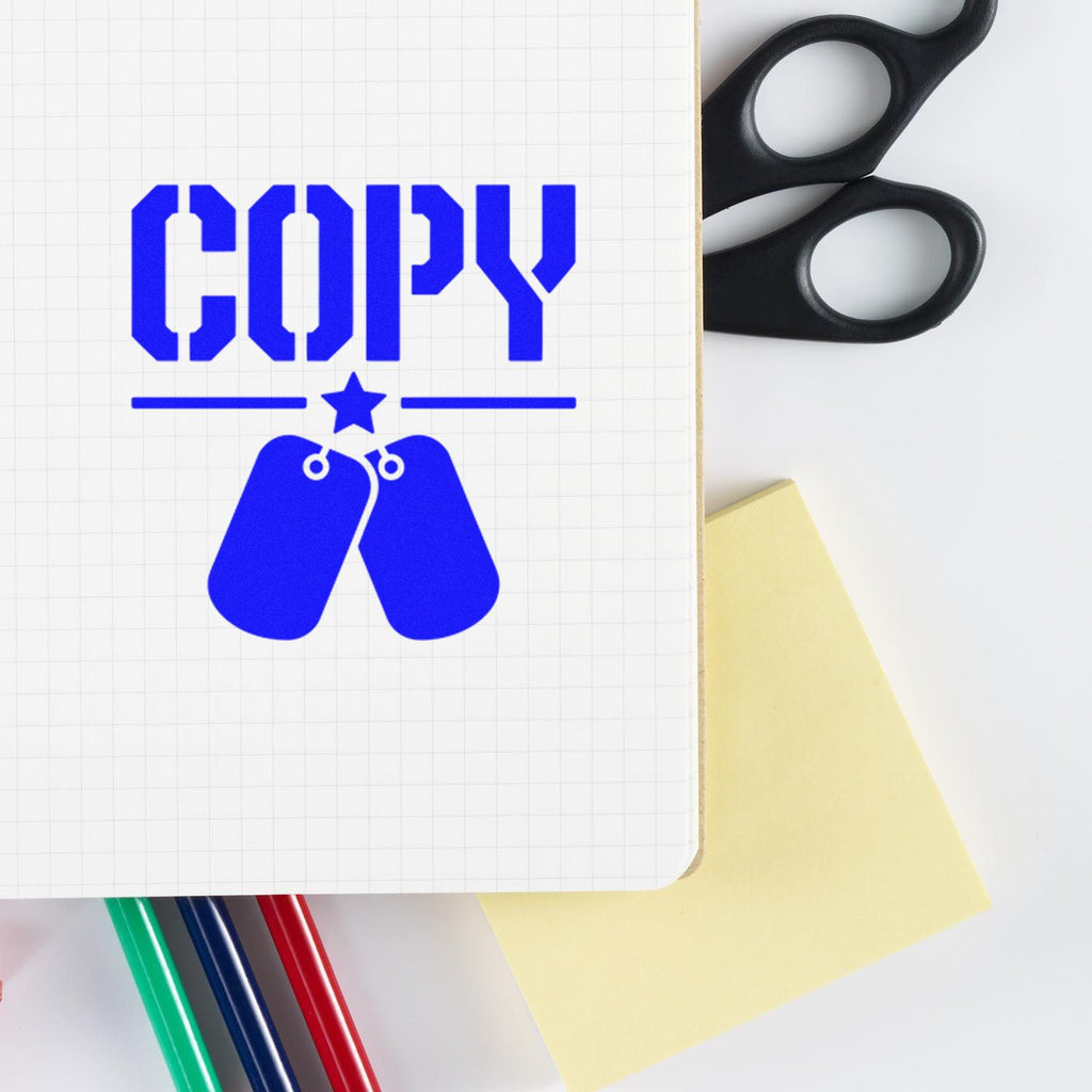 Authoritative and built to perform, the Veteran Copy Pre-Inked Rubber Stamp brings bold military style and dependable office efficiency together in one powerful tool. Featuring a striking black-and-white design with a stencil-inspired COPY graphic, a centered star, and dog tag accents, this stamp delivers a rugged, disciplined look that stands out on every page while keeping your workflow sharp and professional.