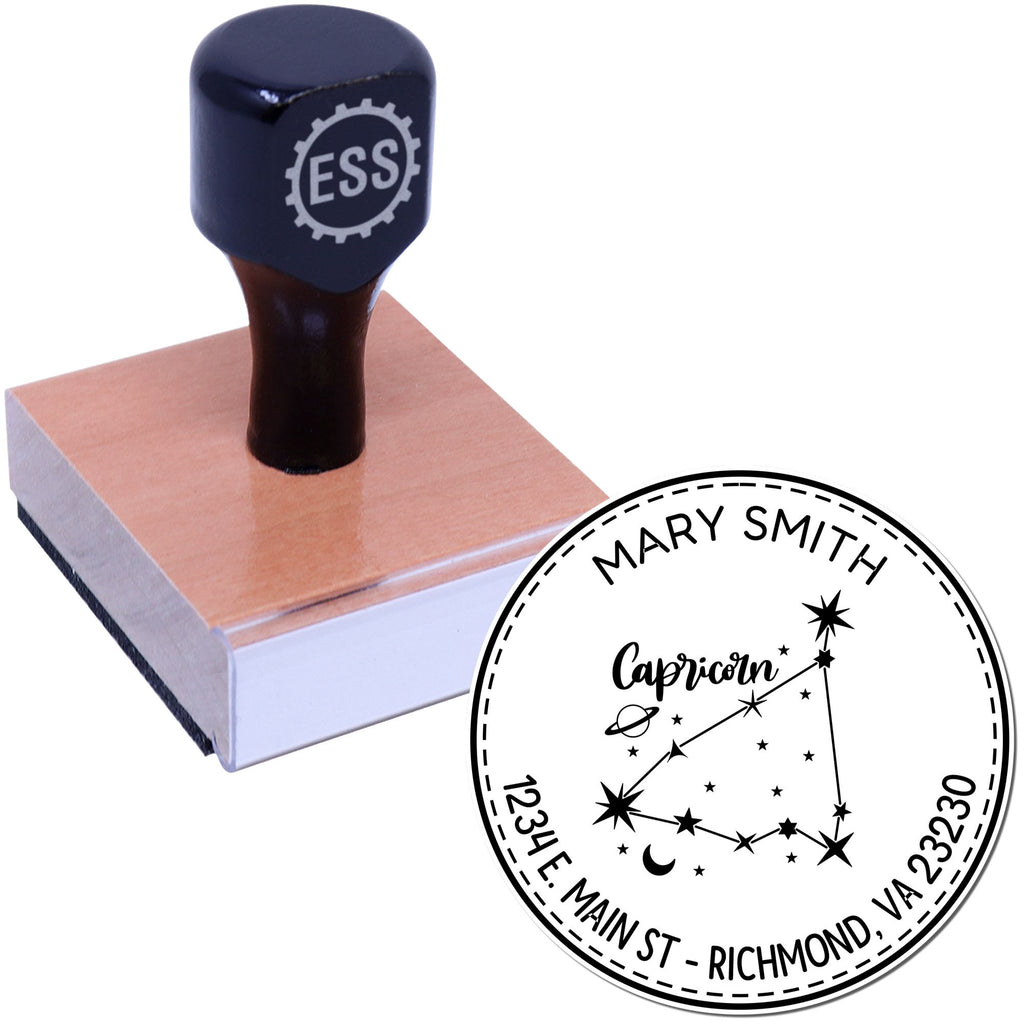 Wood Handle Constellation Capricorn Custom Mailing Stamper Highlights and Features